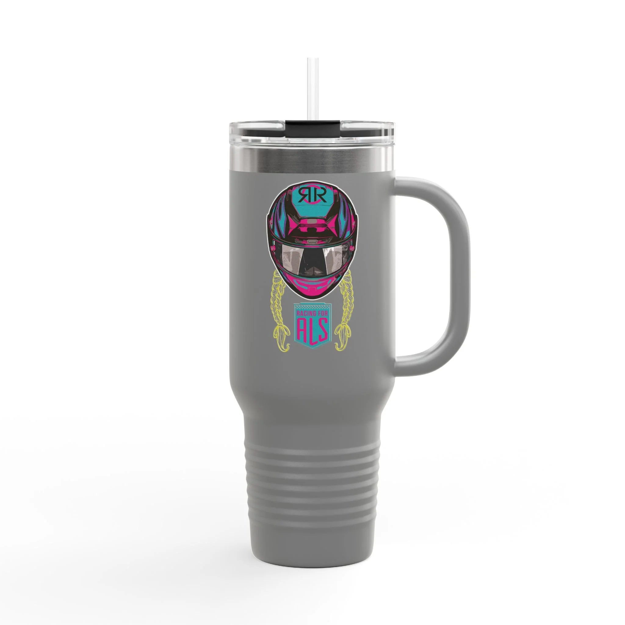 This insulated travel mug is designed with both colorful & monochrome Ryan Cheek Racing logos, one of each. It features a durable 100% stainless steel body and a straw with a lid for enhanced convenience on the go. With a generous 40oz (1.183l) capacity, it keeps your beverages at the perfect temperature thanks to its double-wall insulation. The powder-coated finish adds a sleek touch. **Hand wash only**